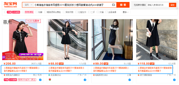 比如搜索“夏装女”,然后按照销量排序(因为好多人都是照抄销量排序第一的),复印全标题,搜索